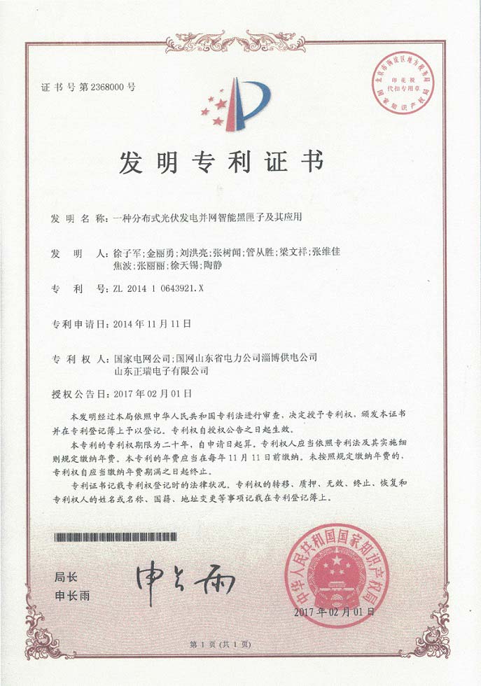 公司系列产品获得国家级多项专利,具有完全自主知识产权,技术先进、性能稳定,